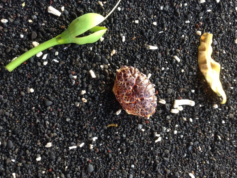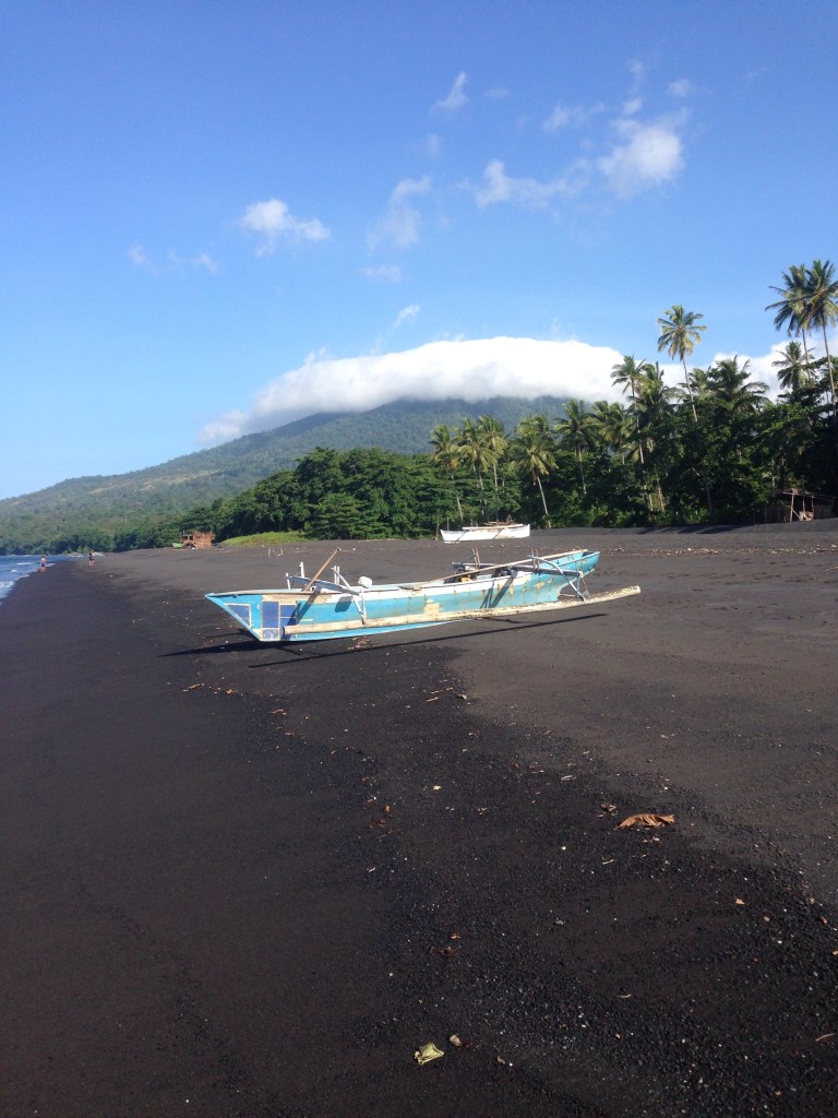 With tomorrow being the big day of exploring Tangkoko, we thought a quick cruise to the village might be fun, so Lea ferried us down the road some way before it became evident that there was a very flat tyre on her car. Lea was mortified as we clicked into gear and set about helping change, but before too long she was in amongst it all, pretty pleased to have not called on her brother for assistance. The town seemed nice enough, but the beach was the highlight. The sand – iron black, not dirty black – was stunning. The seascape dotted with curiously dystopian constructions of bamboo, string and tarpaulin – fishing platforms whose nighttime illuminations attract sweet prey.