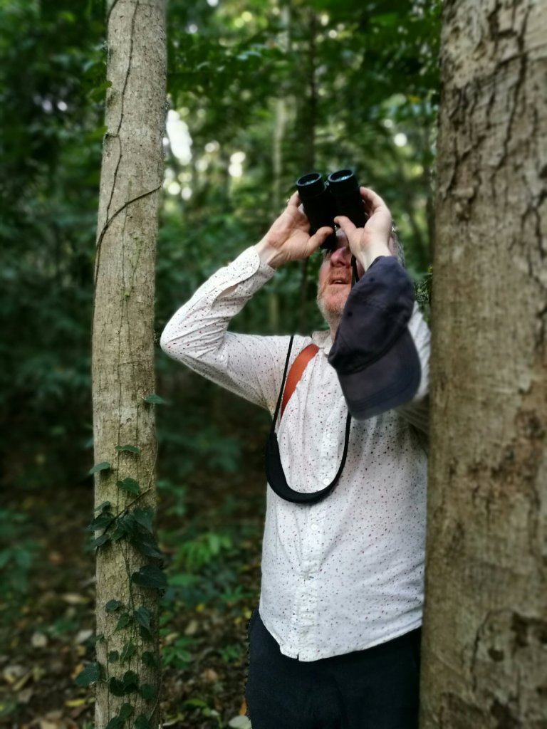 So we traipsed along, JM, AW, Deborah from Barcelona (who was also at the homestay) and Renny, looking for macaques, but generally just having a great time. But oh, then we stopped…a surprise Tarsier sighting! The weirdest, cutest, most improbable little things you can imagine. Barely the size of a rat, but with strange little gremlin-y features, there were three nestled in the hollow of a tree, about three metres from the ground. One particularly endearing little chap sat stoically with fingers laced, all goggle-eyed and fur-cowled; a little madcap magistrate reviewing our movements, assessing our risk to Tarsier society – clearly concluding that all was well and we may proceed, onwards, thank you.A little further ahead, was a clearing, where a half-dozen or so travellers had gathered to catch sight of the Knobbed Hornbill. While immediately recognisable for its spectacular, but rather extreme features (read, bill), the first indication that one is in the vicinity is the disproportionately mighty whomp-whomp-whomp its wings make in flight. And so, before too long, there it was – whomp-whomp-whomp. Settling on a branch to survey the terrain, the male Knobbed Hornbill is indeed a sight. Within a few minutes, it bounded over to a nearby hollow, where Ms Hornbill lay, nurturing or nesting the young. Mr Hornbill proceeded to regurgitate fruit from its curious little neck pouch, husking it dextrously with its ungainly beak, then handing (beaking?) it over to Ms Hornbill for lunch. Really amazing, and so thankful for JM’s binoculars! JM offered the binoculars to Deborah for a look, as she was having some trouble seeing the action from afar. Binoculars do take a while to get the knack of, and JM worked with Deborah to align eyes to lenses just so…it took a while, but it resulted in one of the loveliest moments. When everything aligned, and Deborah locked eyes on the Hornbill, she gave out a little shriek of delight, smiled the biggest smile, and on handing the binoculars back, wipes away tears of pure joy. A beautiful moment with a beautiful person (we love you Deborah 😊).