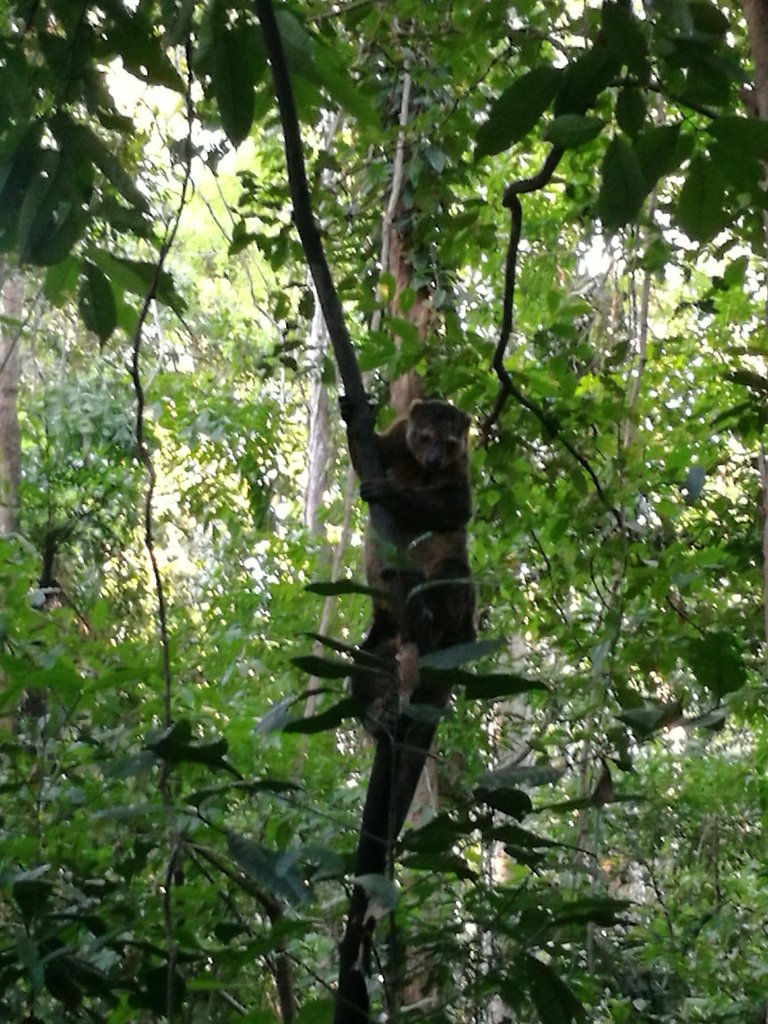 A cacaphonic orchestra of cicadas kept us company throughout, with guest appearances by lizards, snakes, bats and squirrels. Before too long she was pointing to way, way up in treetops, where a furry mass was draped over a ficus branch. The snoozy old cuscus gawped back at us, couldn’t be more nonplussed if it tried. With the cuscus ‘ticked off’ it was on to the hornbill, but a constant eye and ear was kept on the mobile phone. Renny was checking in on her network of rangers to see if there had been any monkey sightings. Nothing. All ok by us, but Renny wasn’t going to let up.